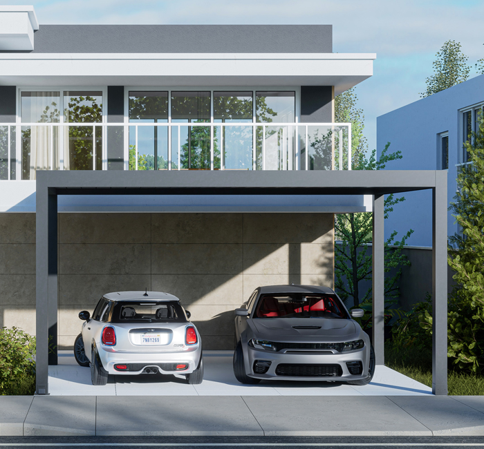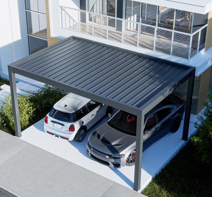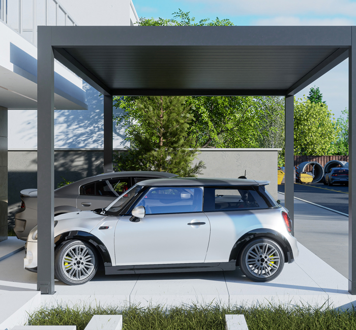 Grazie alle sue linee semplici e alla sua struttura speciale, SkyLounge Carport si adatta all'architettura della vostra casa e protegge il vostro veicolo dalle mutevoli condizioni atmosferiche. Carport può essere costruito in modo indipendente o adiacente alla struttura, permettendovi di proteggere il vostro veicolo dal sole e dal calore nel modo più efficace. Il materiale impermeabile del Carport e la sua struttura resistente alle condizioni esterne vi risparmieranno il fastidio di sbrinare i finestrini dell'auto nelle giornate fredde o il problema del surriscaldamento dell'abitacolo dovuto alla prolungata esposizione alla luce solare diretta. Può proteggere il vostro veicolo dal sole, dalla pioggia, dal gelo e dai forti carichi di neve (il tetto fisso ha una capacità di carico neve di 230 kg/m²). È una soluzione versatile per le vostre esigenze all'aperto, in quanto può fornire protezione per la vostra terrazza, riparare i vostri mobili da esterno dalle intemperie, creare uno spazio in cui godere il vostro pranzo all'aperto e persino fungere da baldacchino per la vostra vasca idromassaggio! Può essere adattato ad ogni esigenza e alle diverse condizioni atmosferiche per garantire che il vostro veicolo sia protetto dal sole, pioggia, gelo e forti nevicate.