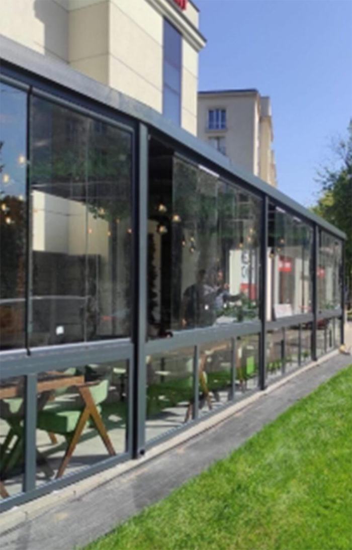 Progettiamo e realizziamo dei dehors in conformità alle normative comunali nei vostri locali come ristoranti, mense e bar. Grazie alla sua struttura in alluminio, è sufficientemente robusto da poter essere utilizzato per molti anni senza problemi. Il tetto può essere in vetro, a tettoia o in alluminio, a seconda delle preferenze. Tutti i nostri sistemi di chiusura inferiore sono costituiti da diversi tipi di sistemi in vetro combinati con l'alluminio.