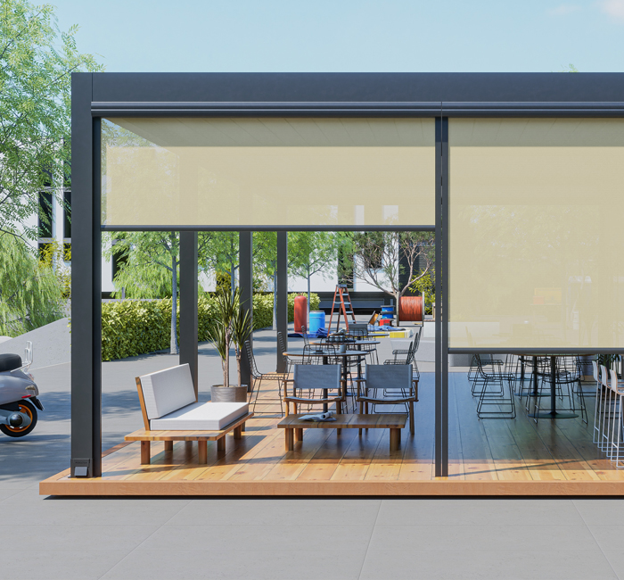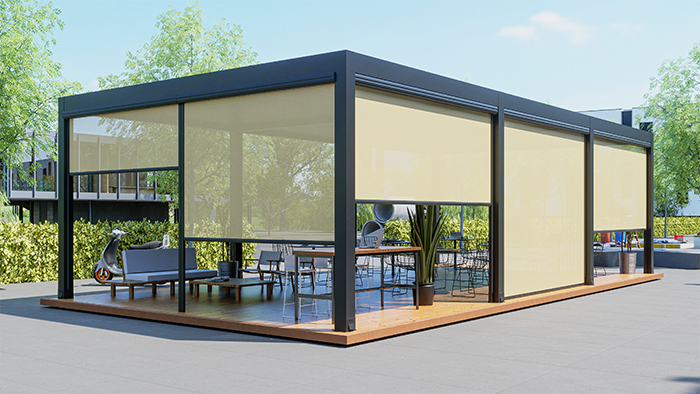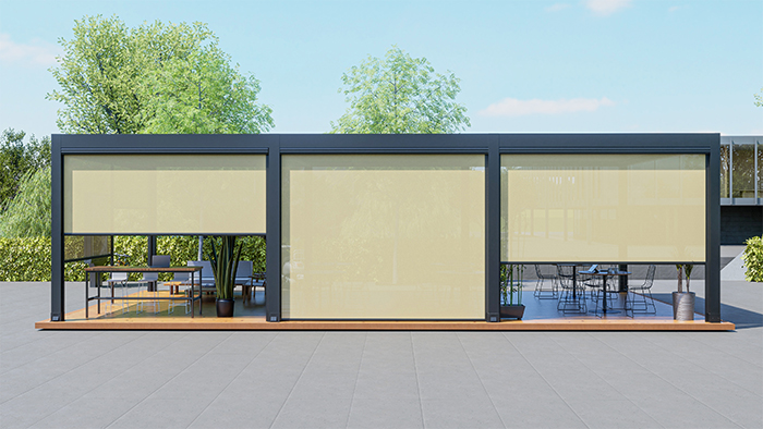 I-Zipscreen è un sistema di tende motorizzate da esterno, progettato per offrirvi spazi esterni confortevoli di cui godere in tutte le stagioni. La caratteristica distintiva del sistema è la cerniera appositamente progettata dell'i-zipscreen, saldata ai bordi del tessuto della tenda. Questa caratteristica garantisce la privacy e protegge lo spazio dal sole, vento, pioggia e insetti durante tutto l'anno. La tecnologia con cerniera i-Zipscreen offre un'eccellente protezione dai raggi solari e UV. Il suo design minimalista è moderno ed elegante. I-Zipscreen è un prodotto innovativo che unisce il motore più all’avanguardia, tessuti ad alta tecnologia e caratteristiche di design estetico. Il cassone del motore chiuso appositamente progettato e le opzioni di colore del tessuto che offriamo si abbineranno perfettamente all'arredamento del vostro spazio esterno.. I-Zipscreen è facile e pratico da usare grazie al suo sistema di pergolato motorizzato telecomandato. Secondo il test del carico del vento condotto da FTI (Facceatproof Testing Institute), i-Zipscreen può resistere a venti fino a 130 km/h, il che lo rende il sistema leader del settore. I-Zipscreen, progettabile e realizzabile in modo completamente personalizzato per spazi residenziali e commerciali, consente di sfruttare al meglio lo spazio all’esterno. Ha una vasta gamma di applicazioni, può essere utilizzato in molte aree diverse come verande aperte, finestre, pergolati e balconi.