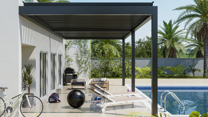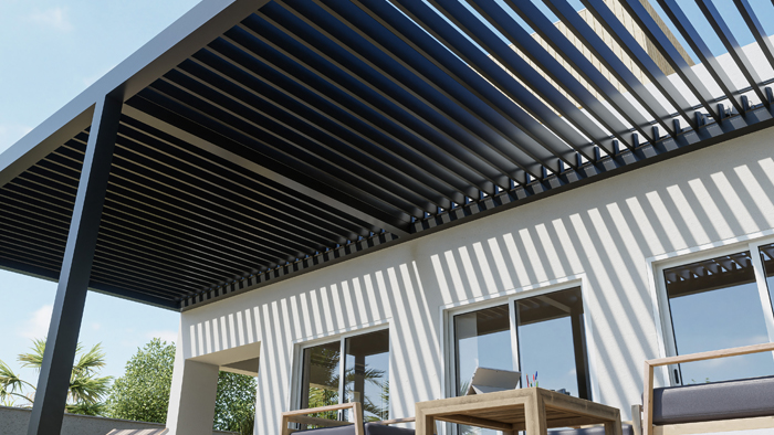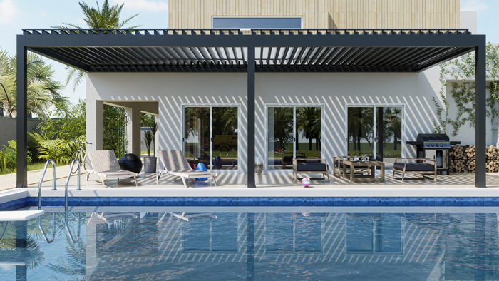 Pergola bioclimatica con lamelle regolabili in alluminio