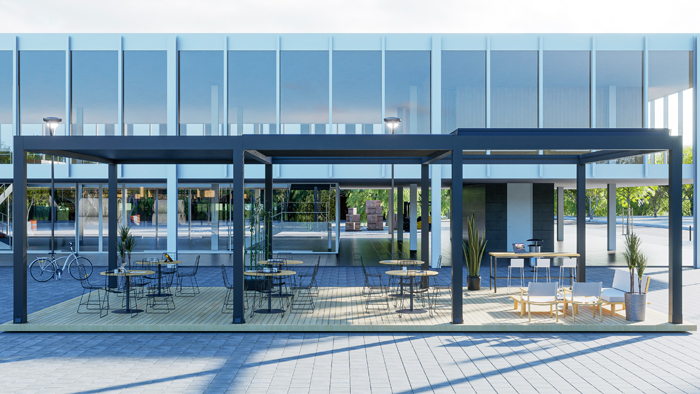 SkyPro è dotato di lamelle in alluminio completamente inclinabili e retrattili che offrono un'eccellente protezione contro il sole, la pioggia e la neve grazie al suo design innovativo. Scoprite la combinazione perfetta tra climatizzazione e protezione con le lame intelligenti automatiche. La tecnologia brevettata consente di ruotare e far scorrere facilmente il tetto nel modo da poter godere al massimo la luce solare in inverno e ammirare il cielo stellato in estate. È possibile regolare le tendine nella posizione desiderata per ottenere la quantità ideale di luce solare, mentre nelle giornate calde permette di buttare fuori l'aria calda tenendo le tendine aperte. L'elegante design a tendine non solo aggiunge funzionalità, ma offre anche un tocco di raffinatezza al vostro ambiente. Con le sue doghe a doppia parete, è pronto a garantire un ambiente protetto quando il tempo cambia, offrendo un'esperienza confortevole in tutte le stagioni. La nostra pergola, con la sua capacità di carico di 200 kg/m2, è in grado di resistere a condizioni meteorologiche avverse e a forti carichi di neve. Il suo design esclusivo consente un facile montaggio e una rapida installazione, rendendo SkyPro un'ottima scelta per chiunque sia alla ricerca di un sistema di pergola bioclimatica durevole,
