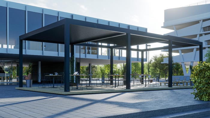 Pergola Bioclimatica con Apertura Assiale e Lamelle Retrattili in Alluminio