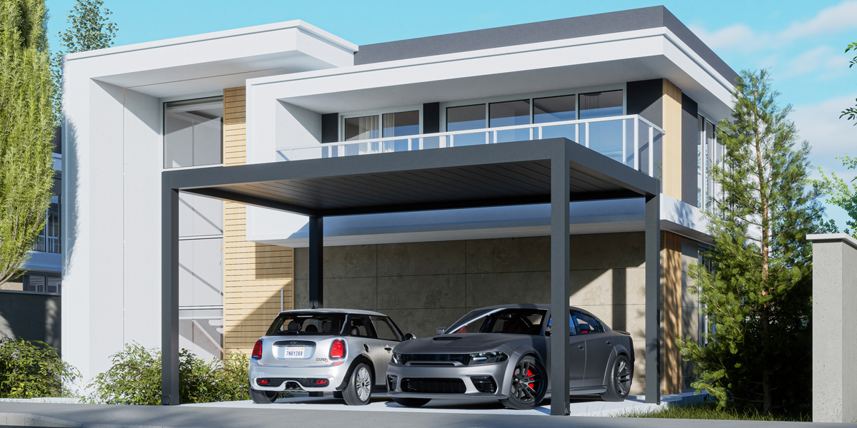 Pergolato per auto con pannelli fissi in alluminio Elegante e minimalista Grazie alle sue linee semplici e alla sua struttura speciale, SkyLounge Carport si adatta all'architettu...